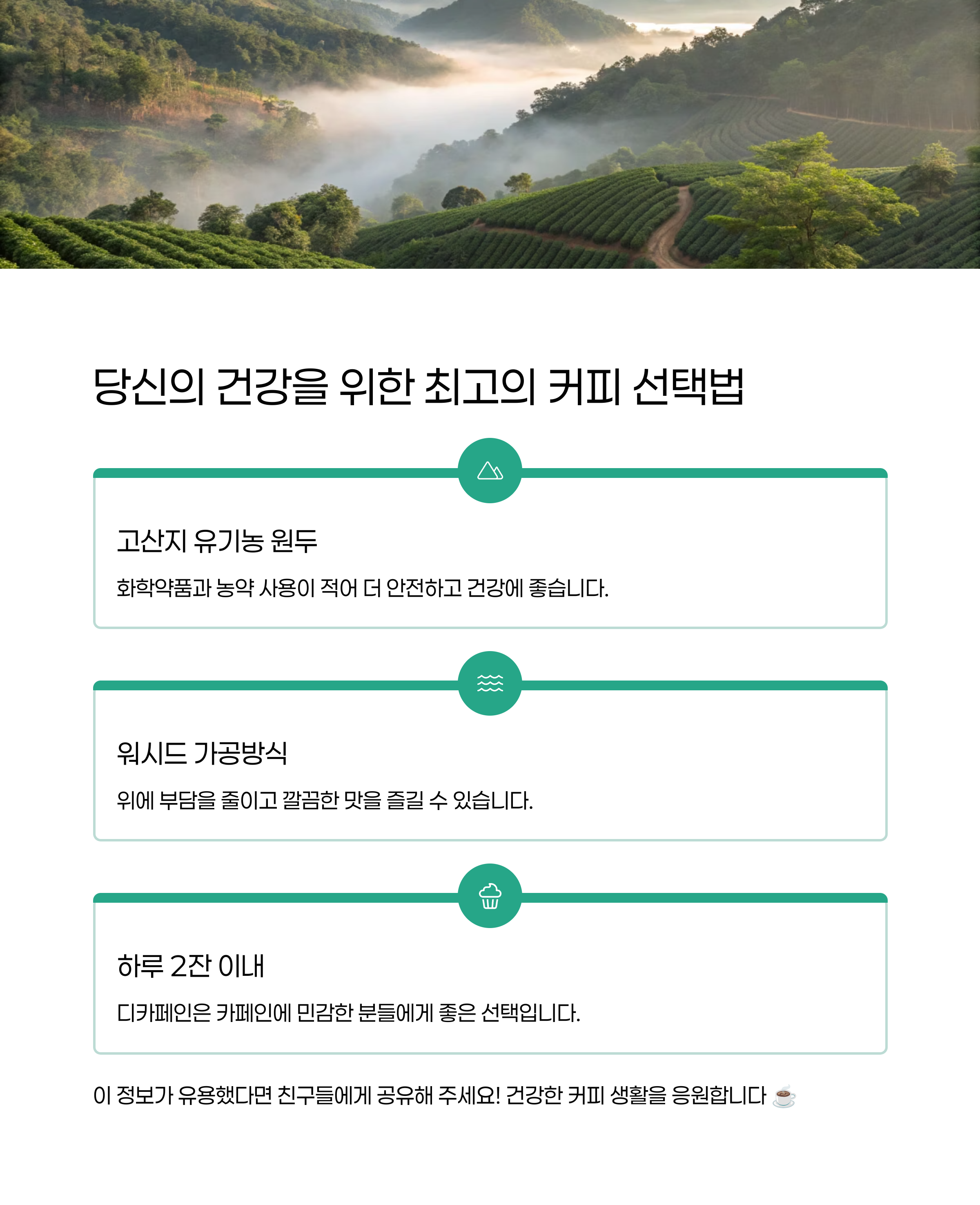 커피는 하루를 여는 필수 음료로 자리 잡았지만, 원두 선택에 따라 건강에 미치는 영향도 달라질 수 있습니다.