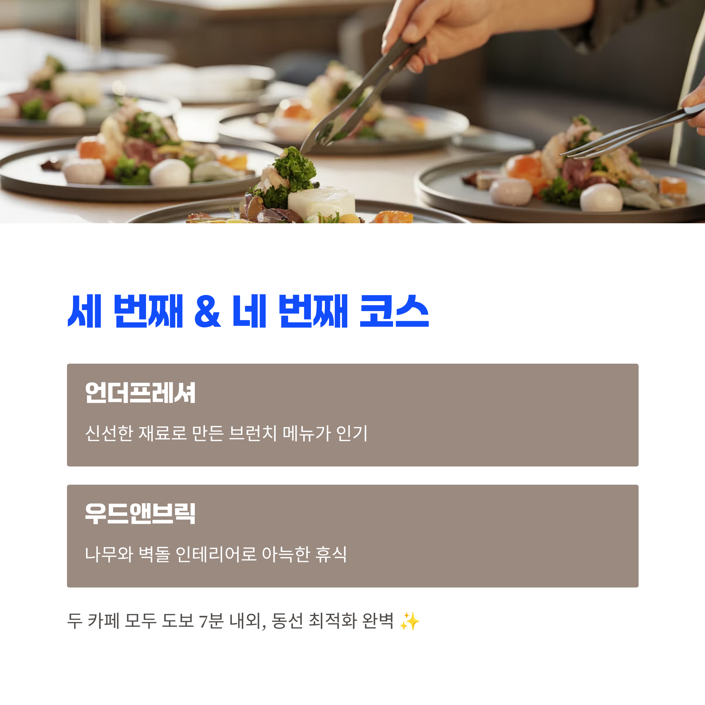 | ③ | 언더프레셔 | 도보 8분 | 브런치와 커피 동시에 |