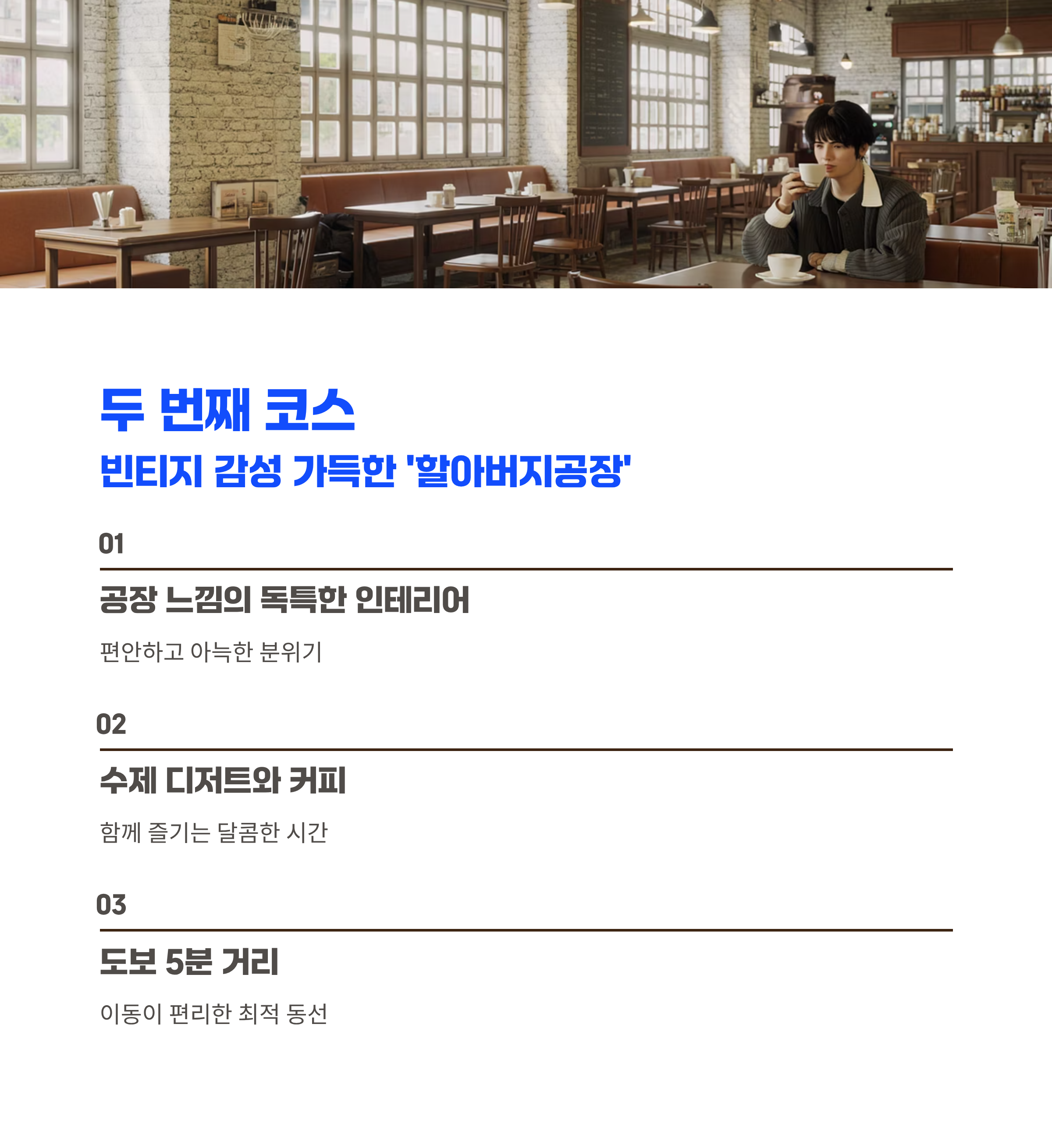 | ② | 할아버지공장 | 어니언 → 도보 5분 | 사진맛집, 조용한 분위기 |