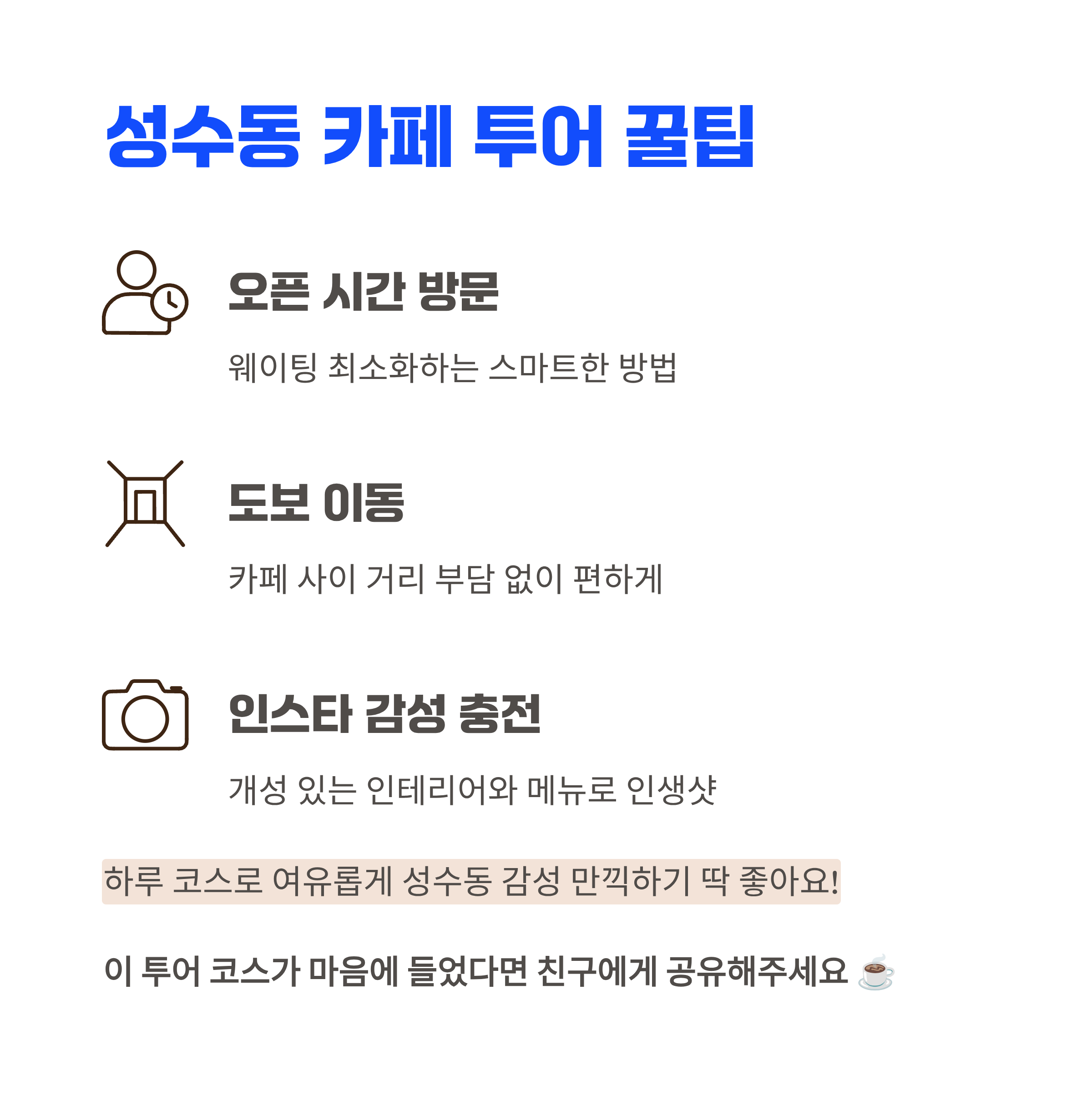 성수동 카페투어 동선 요약표