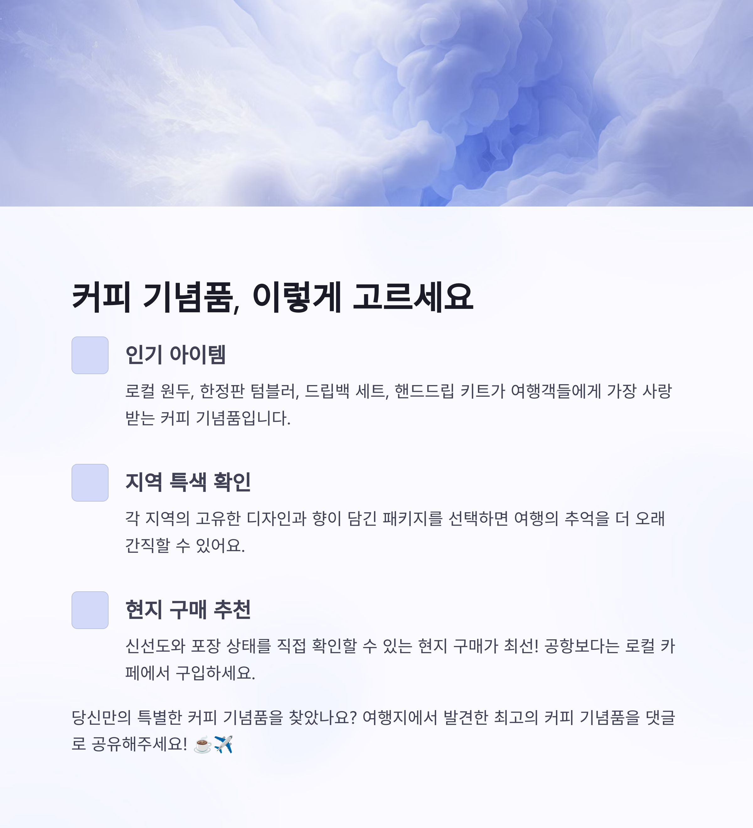 여행지에서 커피 관련 기념품을 고를 때에는