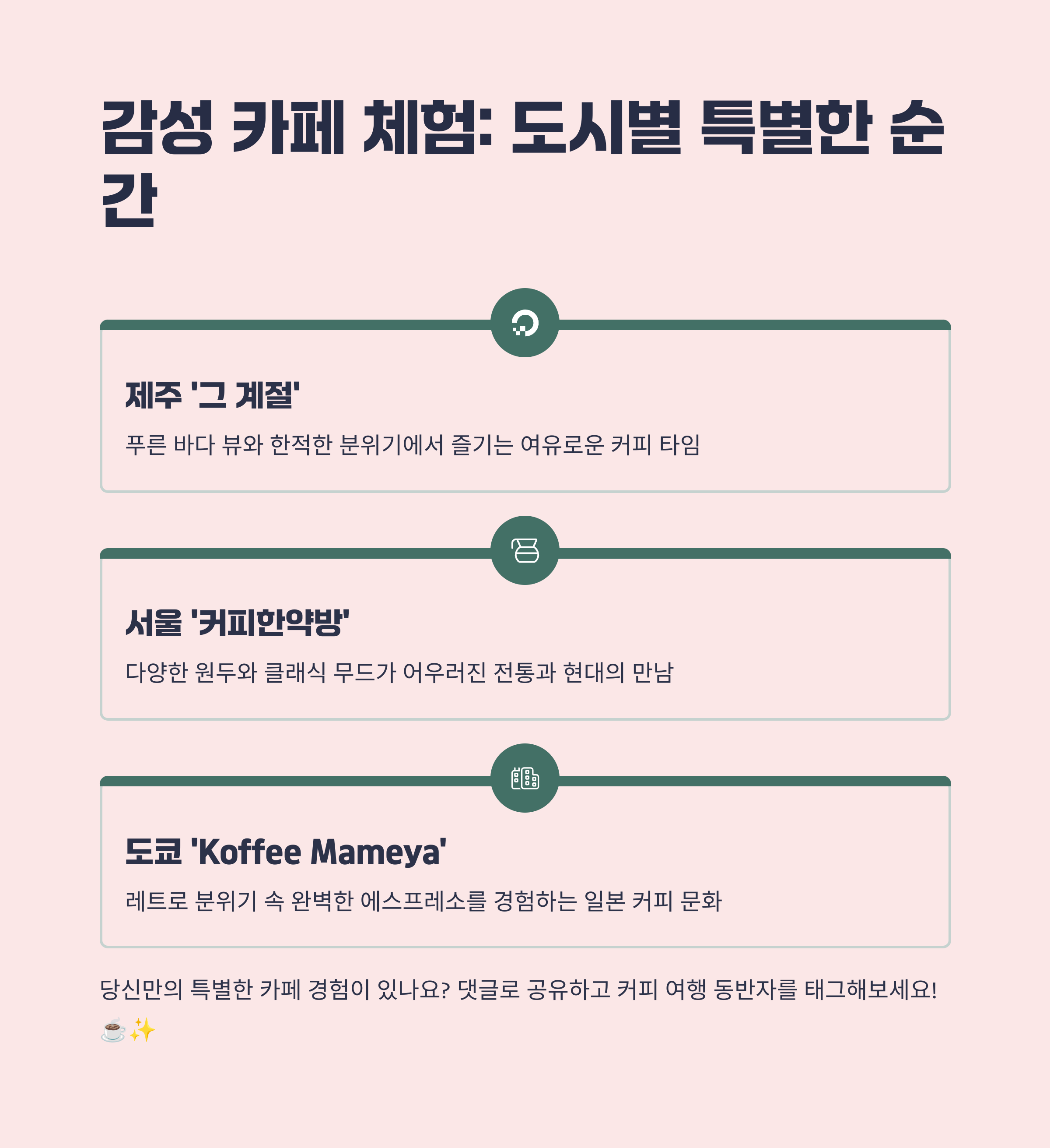 커피와 여행이 만나는 순간, 단순한 음료 이상의 의미가 생깁니다. 이 글에서는 여행 중 마시는 커피가 주는 감성, 일상과의 차이, 그리고 국내외 여행지에서 꼭 들러볼 감성 카페까지 함께 소개합니다. 커피 한 잔이 여행을 어떻게 바꾸는지 함께 느껴보세요.