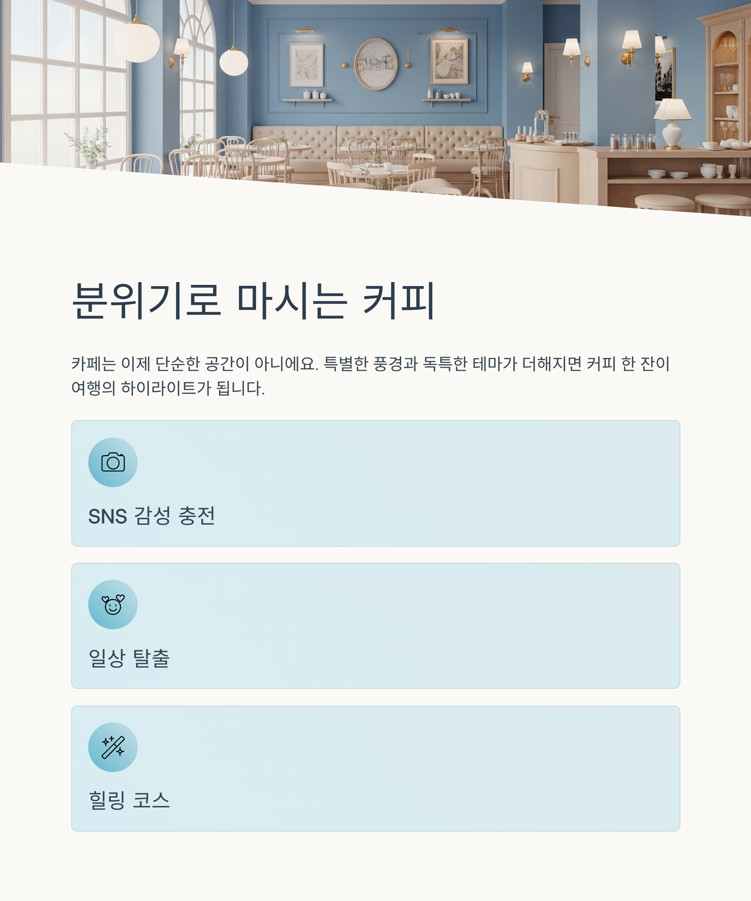 카페는 이제 단순히 커피만 마시는 공간이 아니에요.