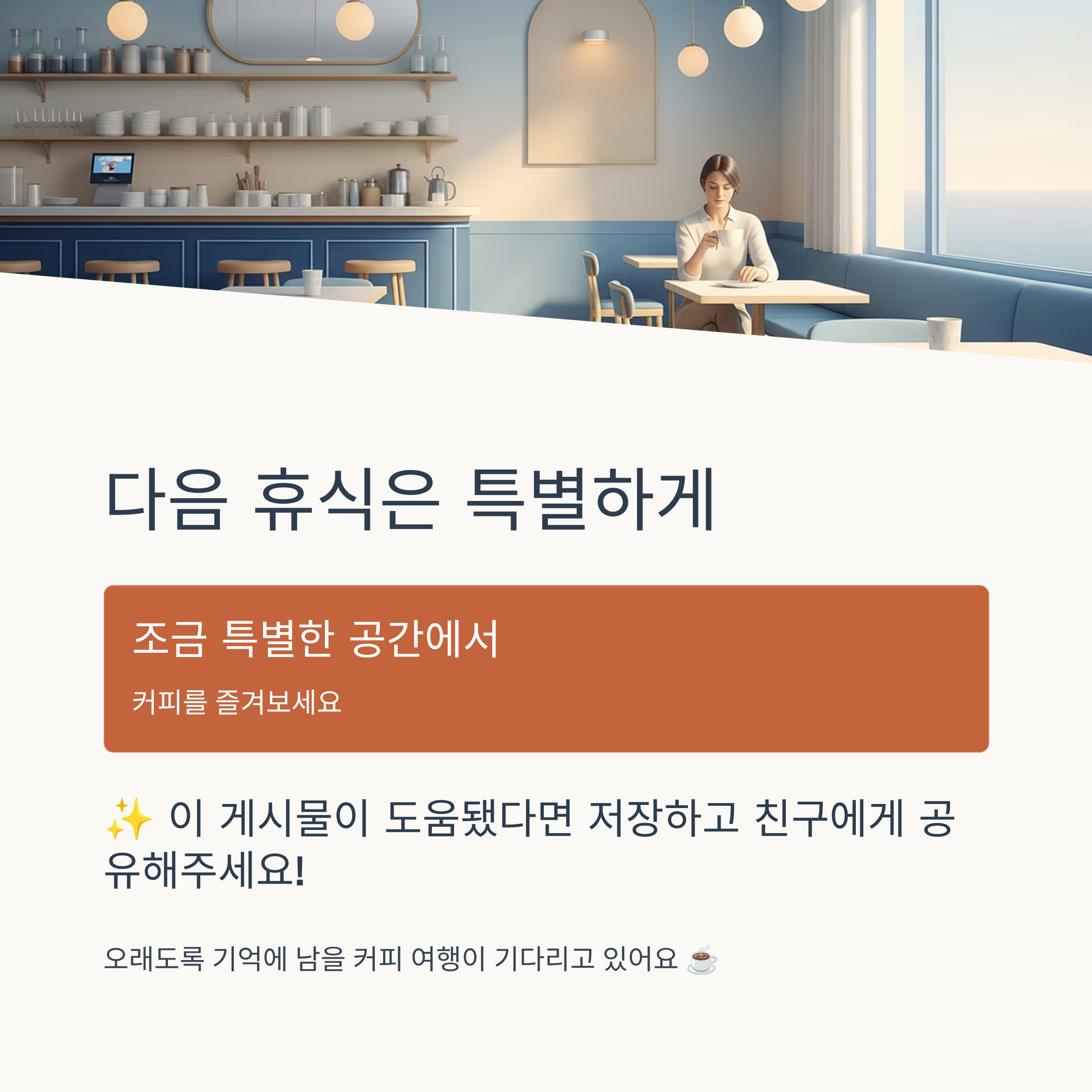 다음 휴식에는 흔한 장소보다 조금 특별한 공간에서 커피를 즐겨보세요.