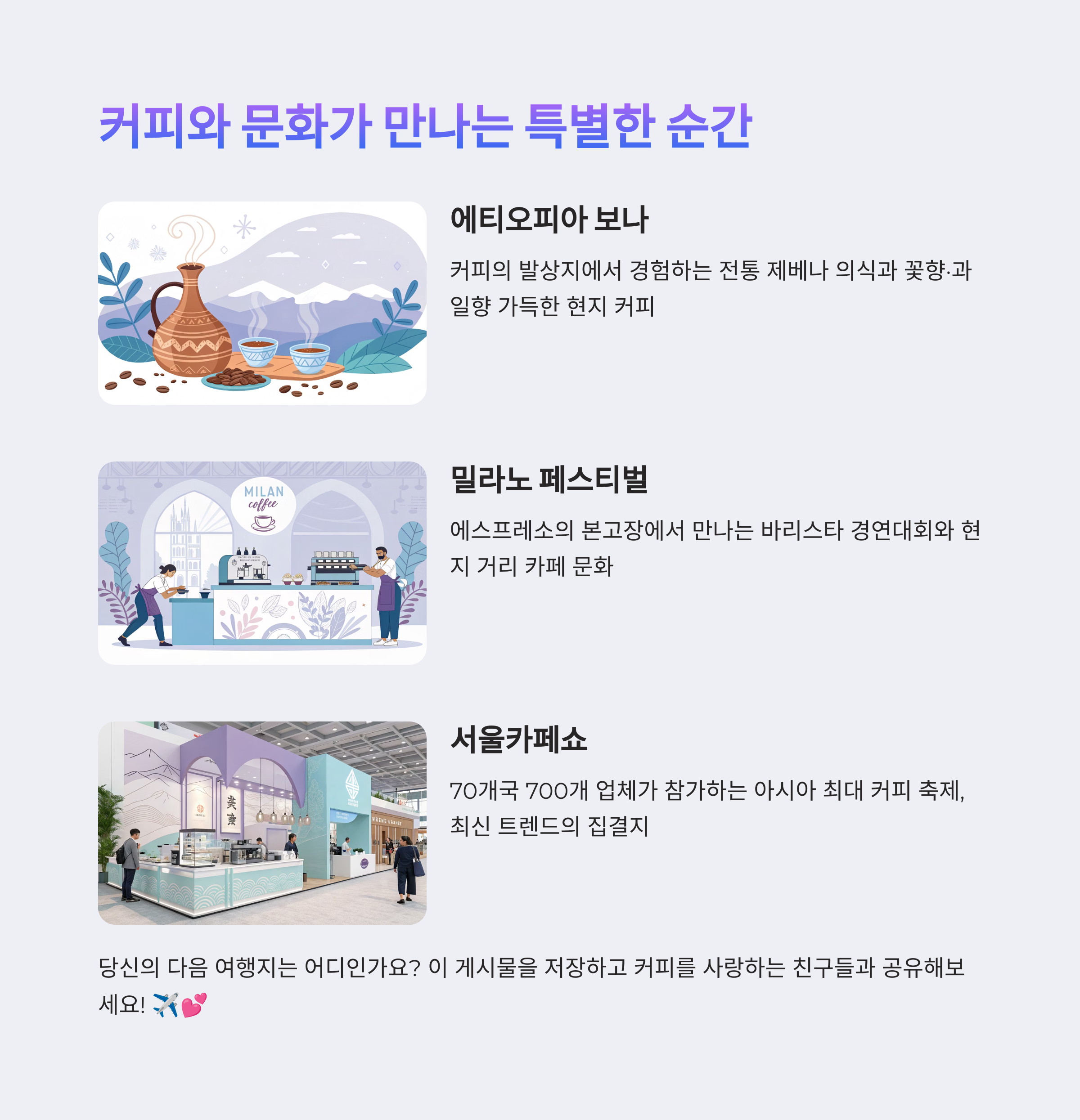 다양한 커피 축제들은 여행의 색다른 즐거움을 선사합니다.