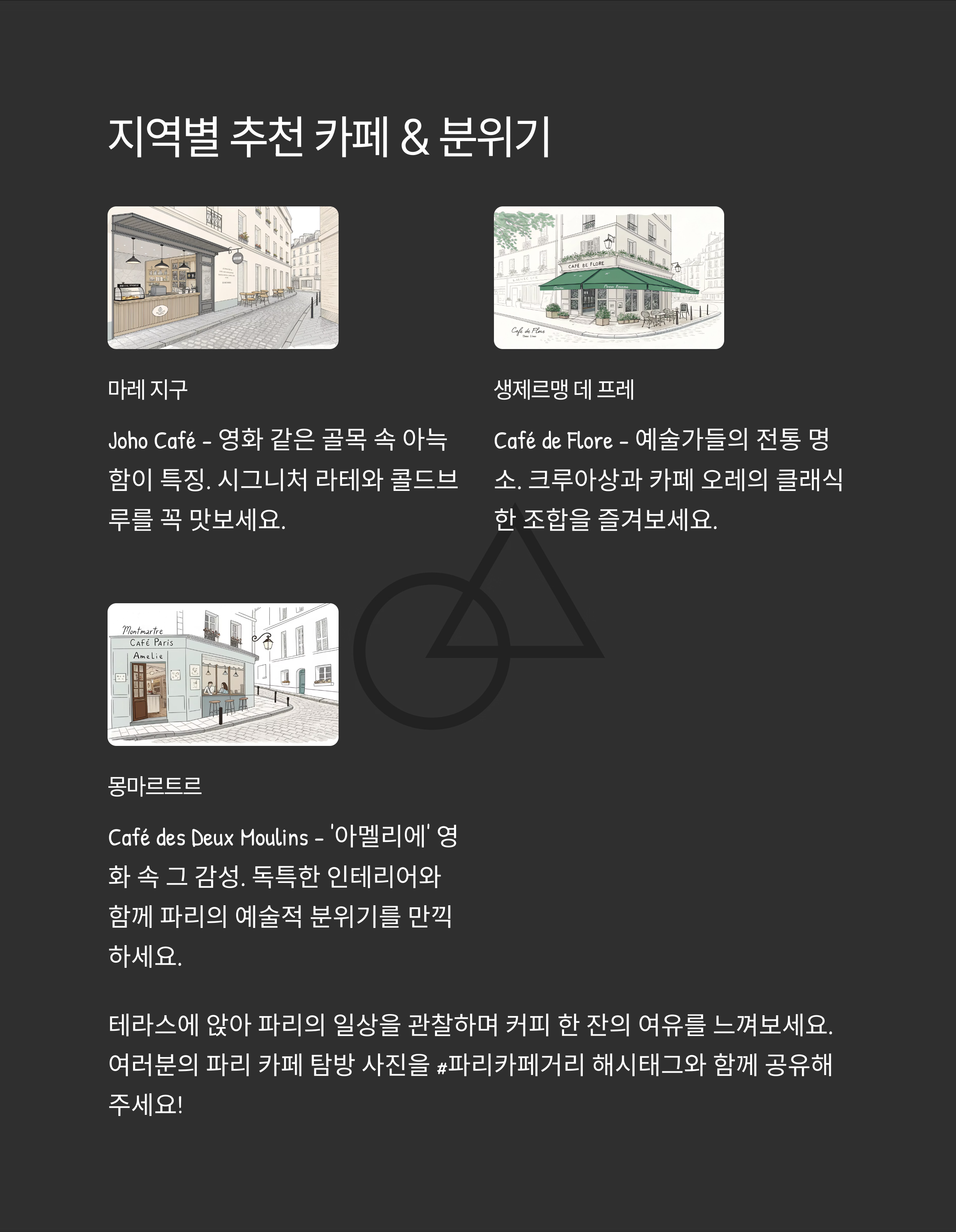 여행자의 낭만을 자극하는 파리의 카페 골목, 어디부터 걸어볼까요?