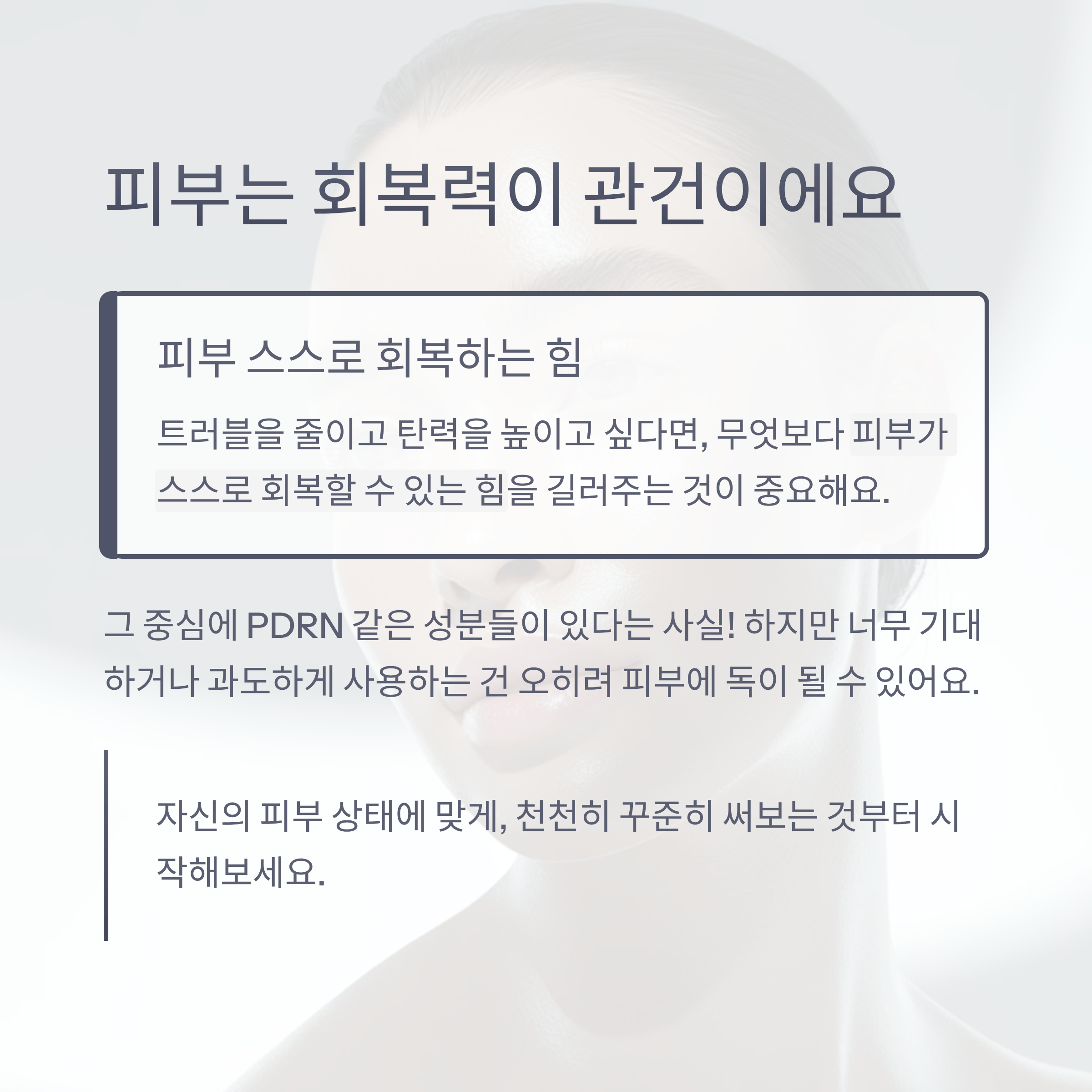 피부가 스스로 회복할 수 있는 힘을 길러주는 것이 중요해요.