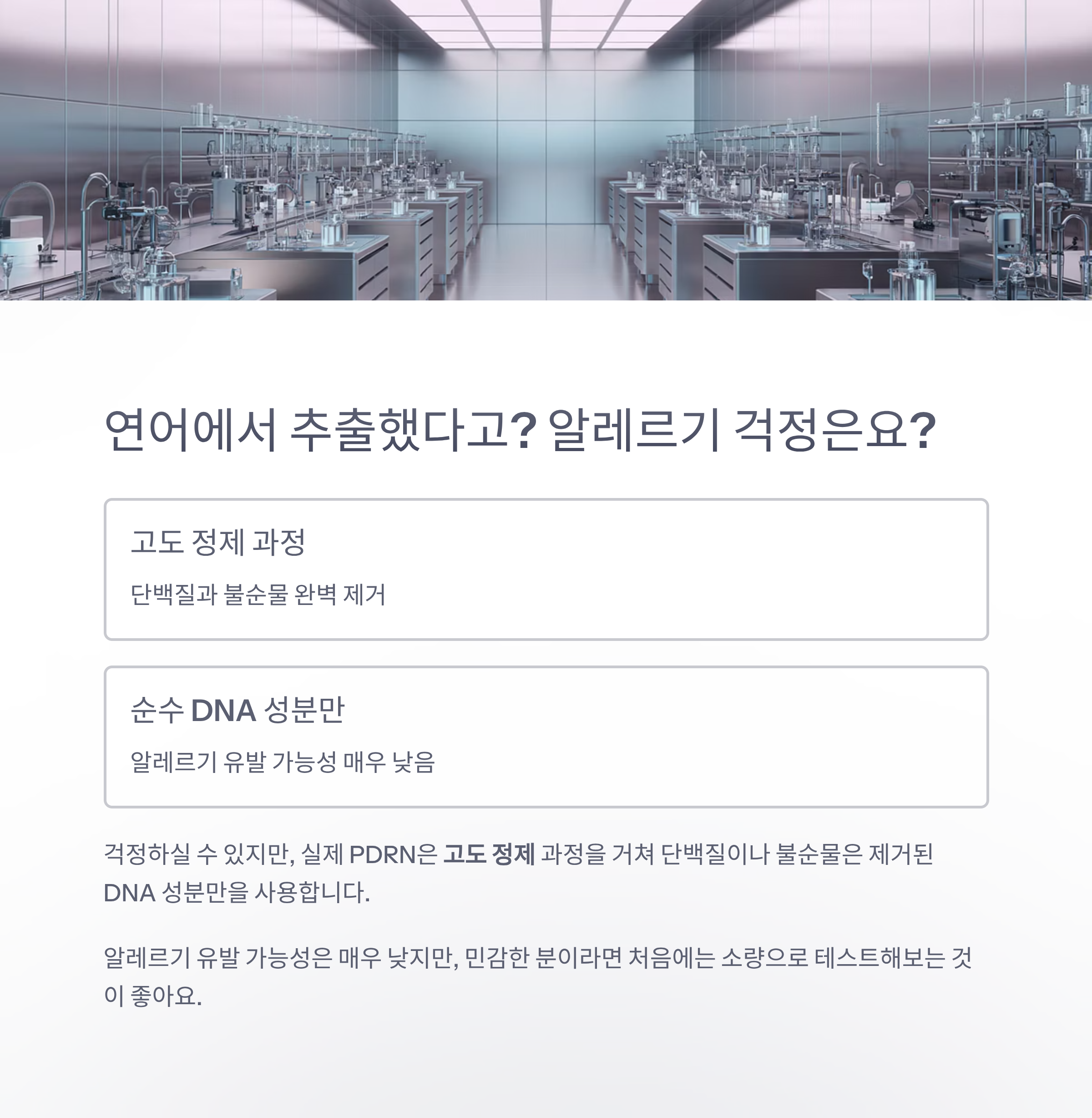 걱정하실 수 있지만, 실제 PDRN은 고도 정제 과정을 거쳐
