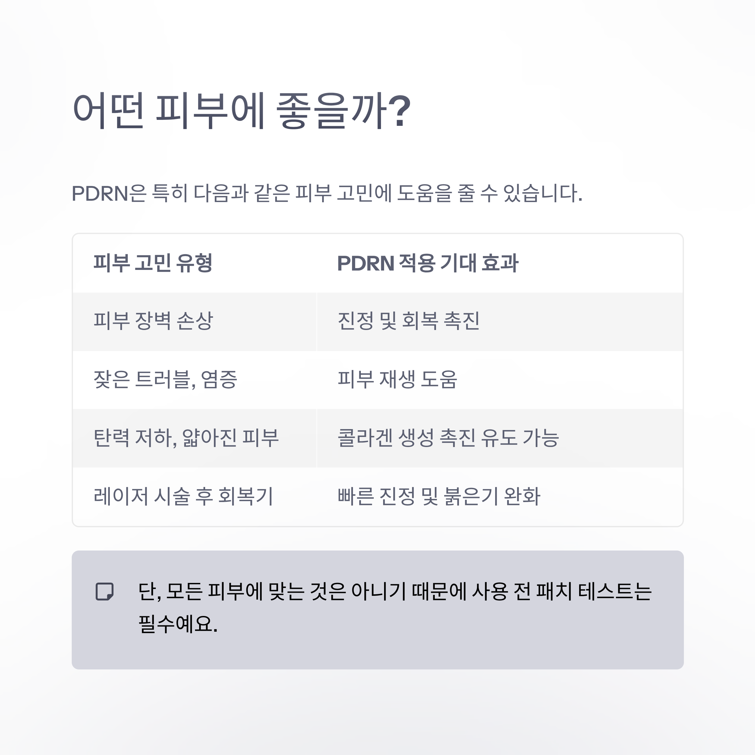 PDRN은 특히 다음과 같은 피부 고민에 도움을 줄 수 있습니다.